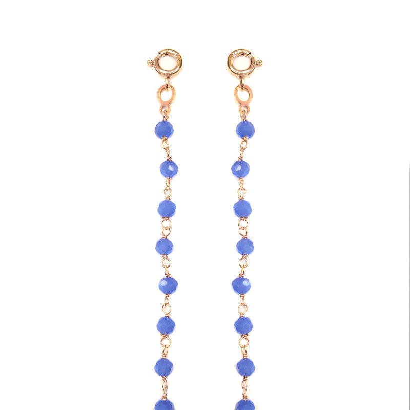 Available in Gold 925 Silver or Rose Gold 925 Silver, with cut synthetic beads, in navy blue.