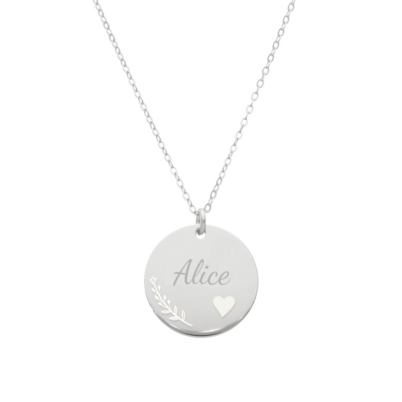 Customizable Silver Necklace with Name, Heart and Floral Motifs