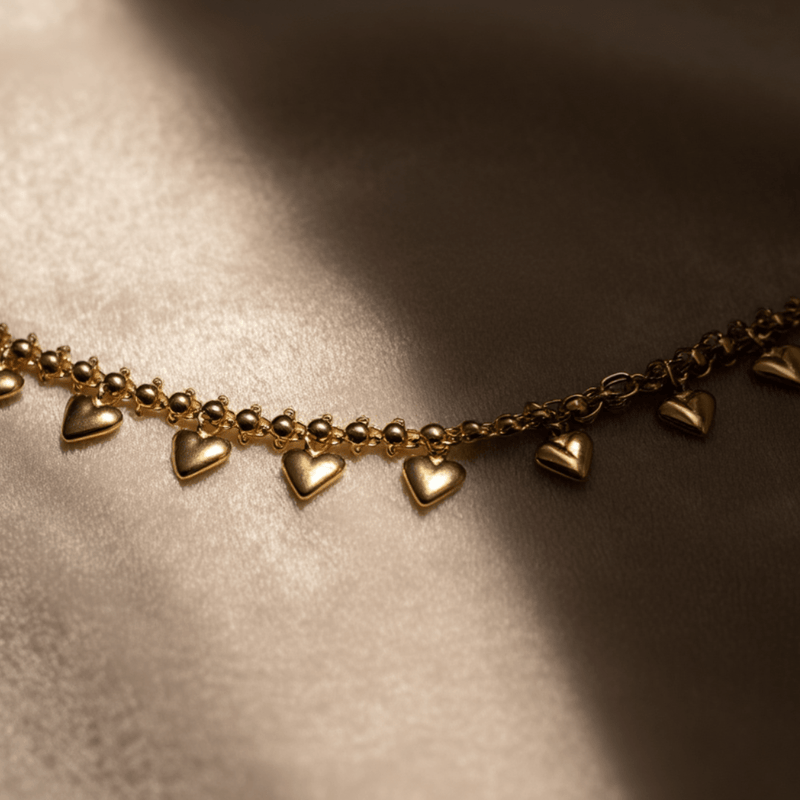 This stunning 19.2kt Gold Choker is a true work of art, adorned with delicate hearts that symbolize love and elegance in its purest form.