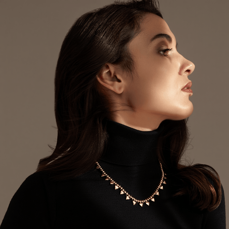 This 19.2kt gold choker is more than just jewelry; it's a declaration of love and refined style. It's perfect for complementing everyday looks or adding a touch of elegance to special occasions.