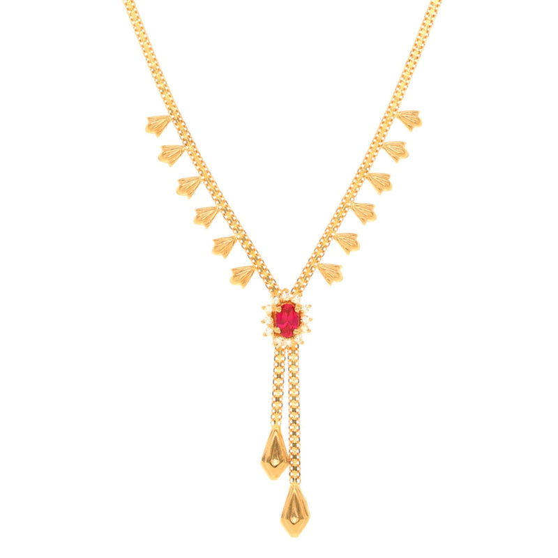 Gargantilha de Ouro 19.2kl com Rubi ladeado de Zircónias e Detalhes Elegantes – Sofisticação Clássica com Design Exclusivo
