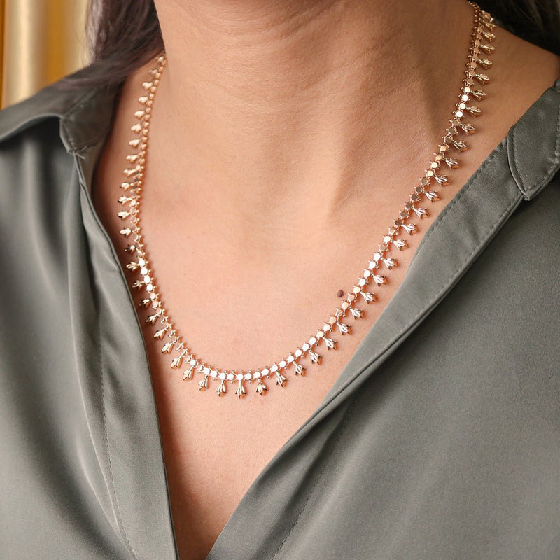 This stunning 19.2kt Gold Choker is a true work of art, adorned with delicate leaves that symbolize renewal and prosperity in their purest form.