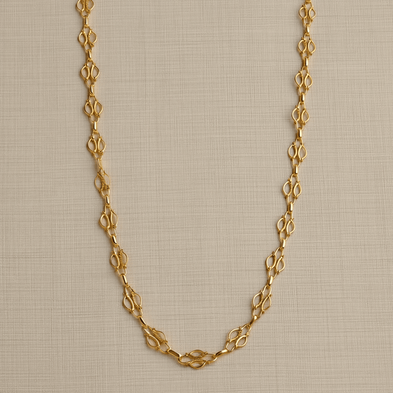 This stunning gold chain combines the purity of 19.2-karat gold with the elegance of hand-crafted links. These traditional, hand-crafted links add a touch of charm and culture to this piece of jewelry. Versatile and elegant, this gold chain can be worn for any occasion, offering a perfect blend of tradition, sophistication, and dazzling shine.