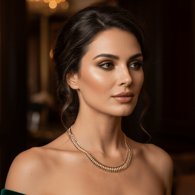 Ideal para quem procura uma joia discreta mas com presença, a gargantilha fina de ouro 19kl adapta-se perfeitamente a diferentes estilos e ocasiões — desde o uso diário até eventos especiais. O seu design requintado valoriza o brilho natural do ouro e destaca-se pela originalidade da malha em forma de rectângulos texturizados. Uma peça versátil, feminina e cheia de personalidade, pensada para mulheres que apreciam detalhes e acabamentos de excelência.