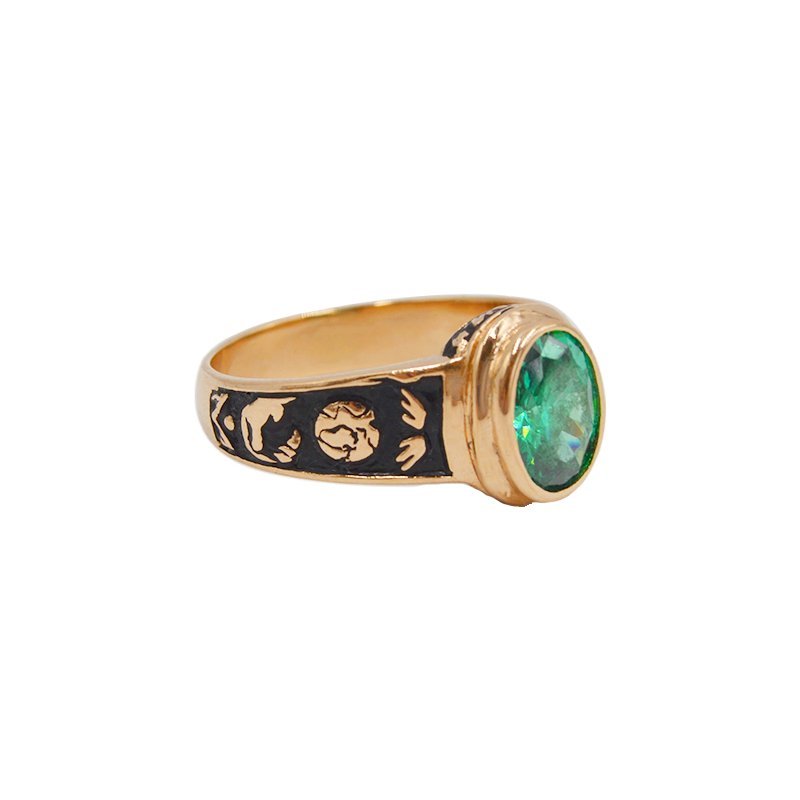 Anillo Curso (ESES) en Oro Amarillo de 19,2K con Cuarzo Verde.
