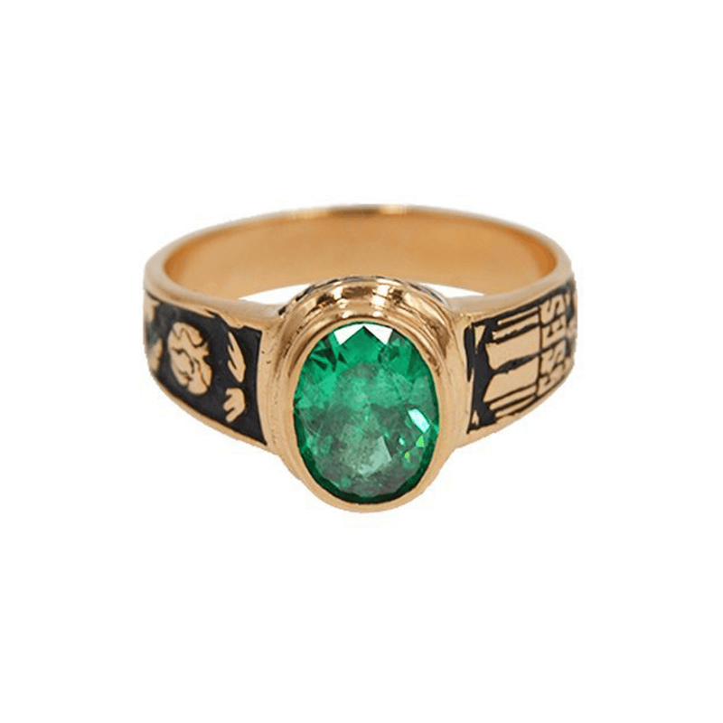 Anillo de Curso (ESES) en Oro con Cuarzo Verde (T12)