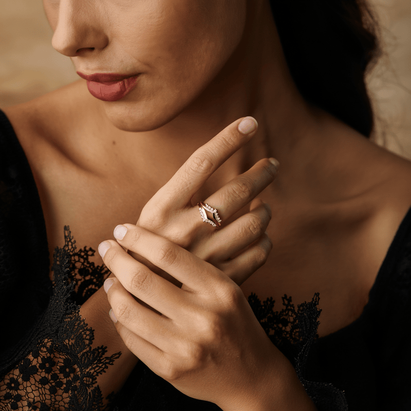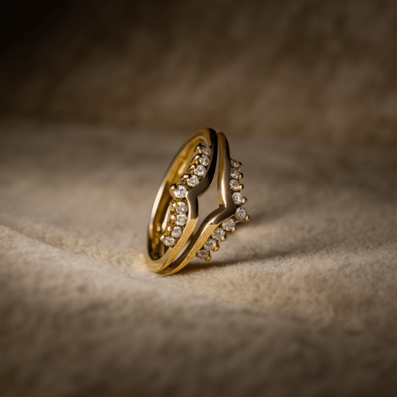 Anillo de doble tiara en oro de 19 k: delicadeza realzada con capas de brillo