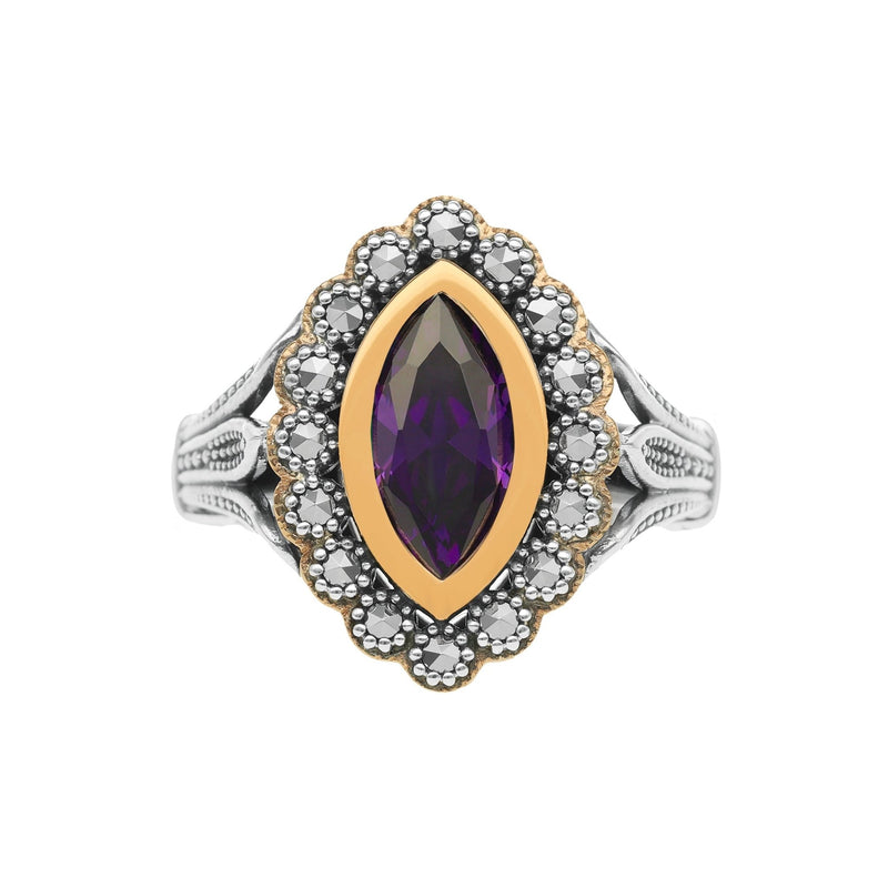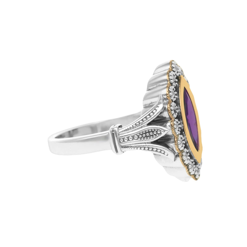 Anillo Ovalado en Plata 925 y Oro 9k con Piedra Morada