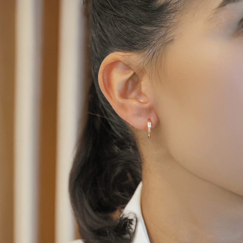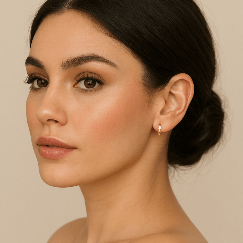 Estos pequeños aros, adornados con brillantes circonitas cúbicas, son la definición de una elegancia sobria. Su diseño clásico y atemporal es ideal para quienes buscan una pieza versátil que complemente cualquier look, desde el más informal hasta el más sofisticado.