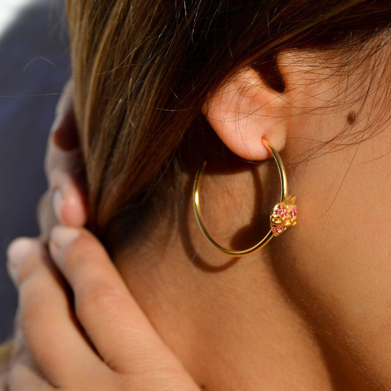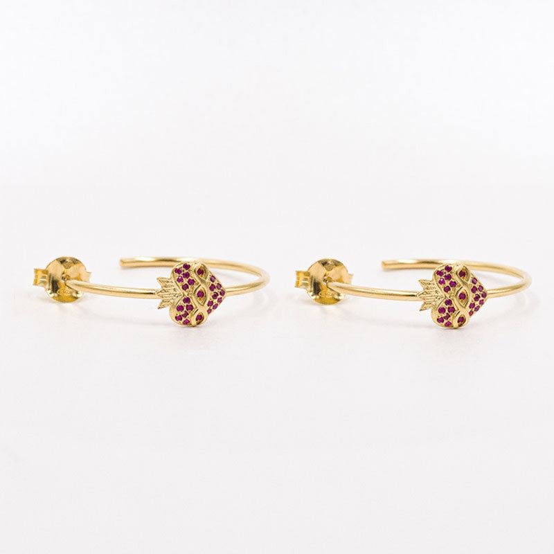Aros de plata 925 con corazón del Vaticano y circonitas rubí