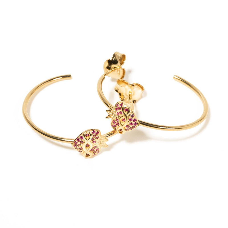 Aros de Plata de Ley (925), adornados con un Corazón del Vaticano, tachonado con Circonitas Rubí