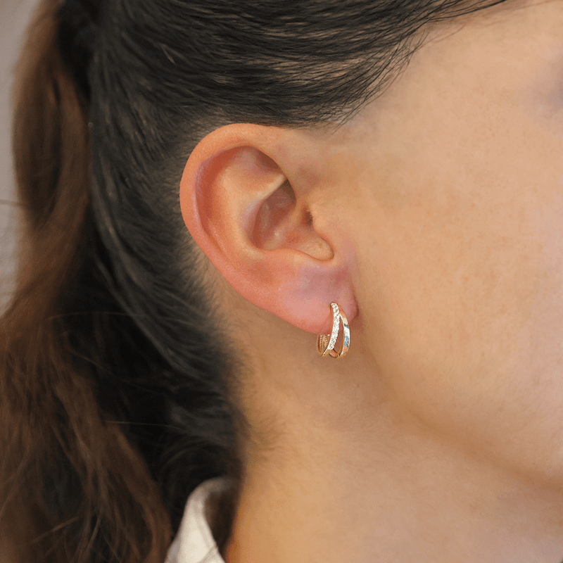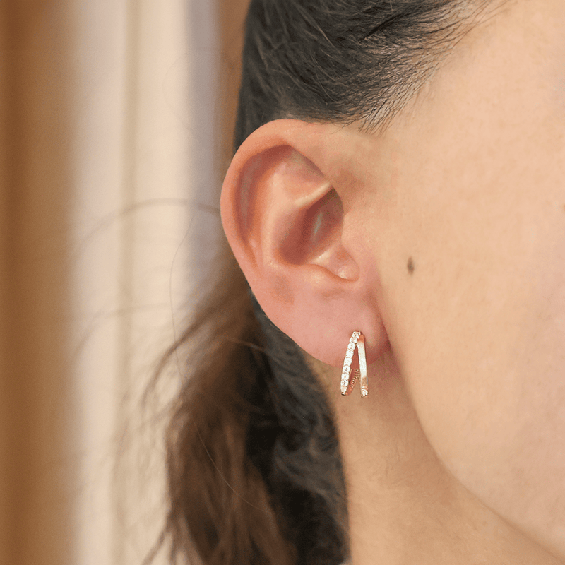 Aros Dobles en Oro 19k con Circonitas (1,3cm)