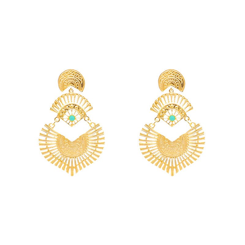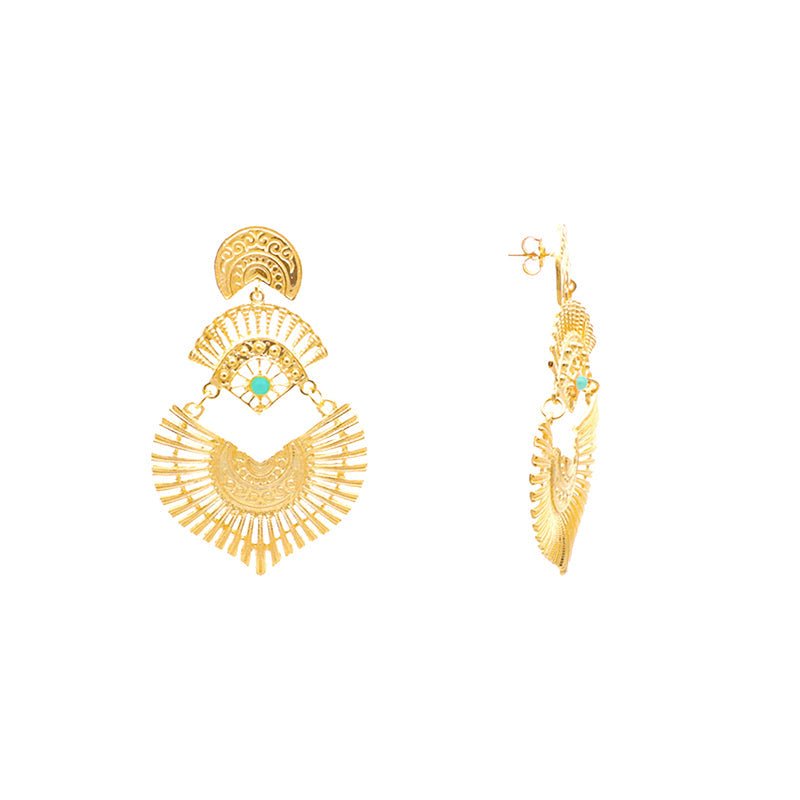 Pendientes Aurora en Plata 925 bañada en Oro y perla Aqua - Colação Iluminar. Fabricado en Portugal.