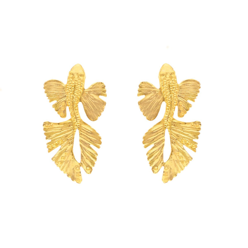 Estos pendientes dorados de carpa koi son una representación elegante y sofisticada de la belleza y el significado cultural de la carpa. Su diseño presenta una carpa koi estilizada, símbolo de fuerza, coraje y determinación en la cultura japonesa. La carpa koi se asocia a menudo con cualidades como la perseverancia y el éxito, lo que hace que estos pendientes no solo sean hermosos, sino también significativos.