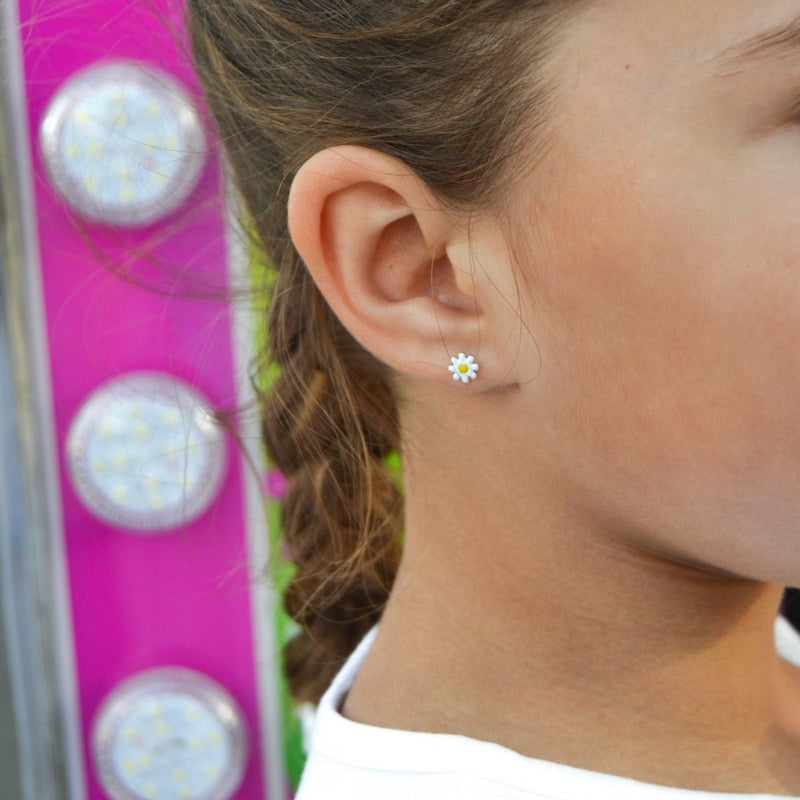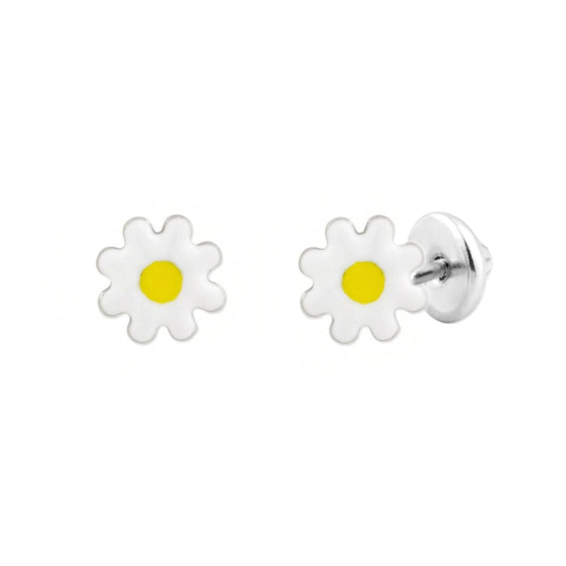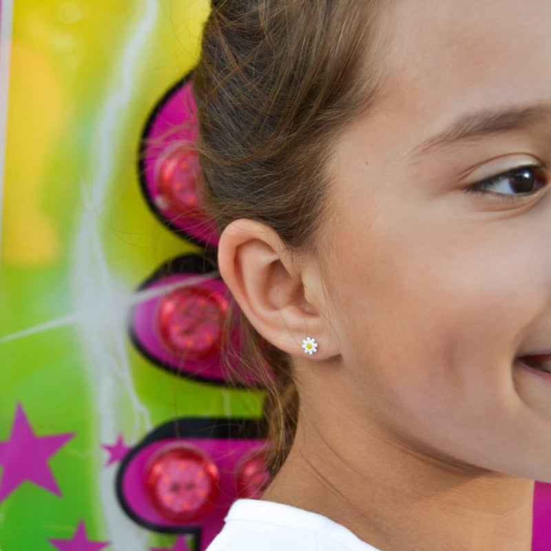 Pendientes de Plata con Margaritas en Esmalte de Colores