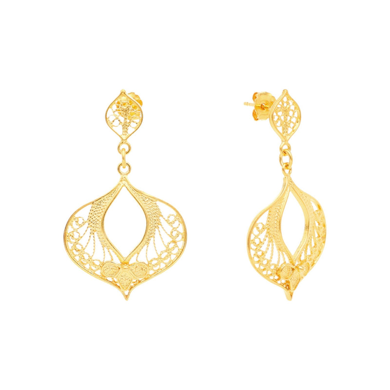 Pendientes de guitarra portuguesa en plata 925 bañada en oro con filigrana
