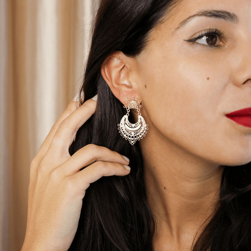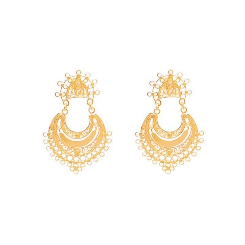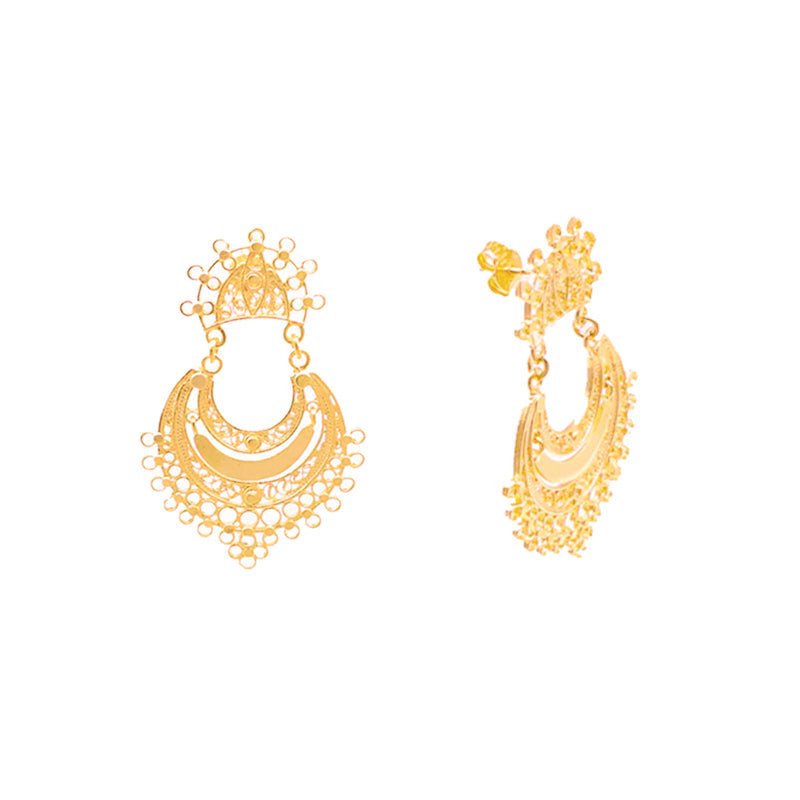 Los pendientes Luna en plata 925 dorada son una celebración de la exclusividad y del distintivo estilo joyero portugués. Presentan un rico tono dorado y una meticulosa elaboración que distingue a la pieza. Cada pendiente es un homenaje al lujo, elaborado meticulosamente por artesanos en Portugal, con detalles que capturan la esencia de la sofisticación. El diseño de los pendientes Luna es ideal tanto para ocasiones especiales como para el día a día, gracias a su tamaño reducido en comparación con los demás pendientes de la colección.