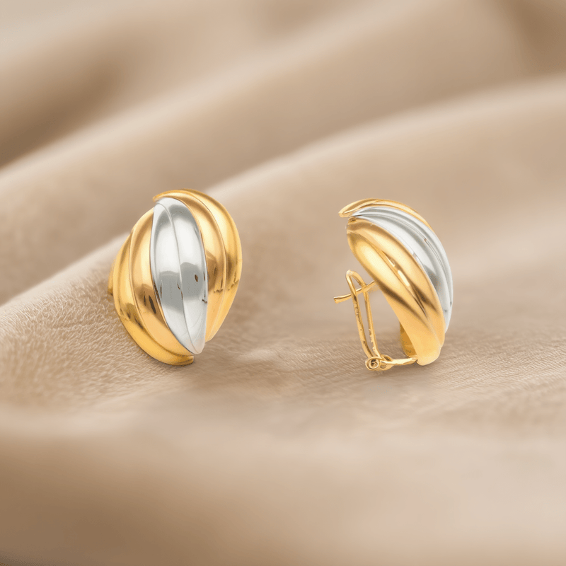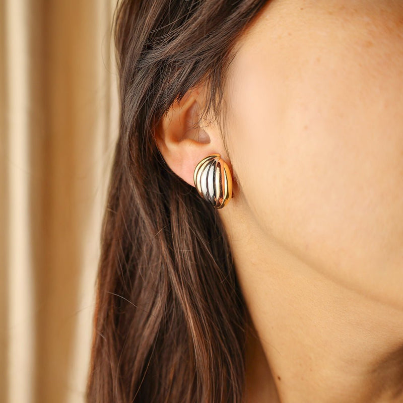 Pendientes de media concha tricolor en oro de 19,2 k: tres tonos de elegancia atemporal