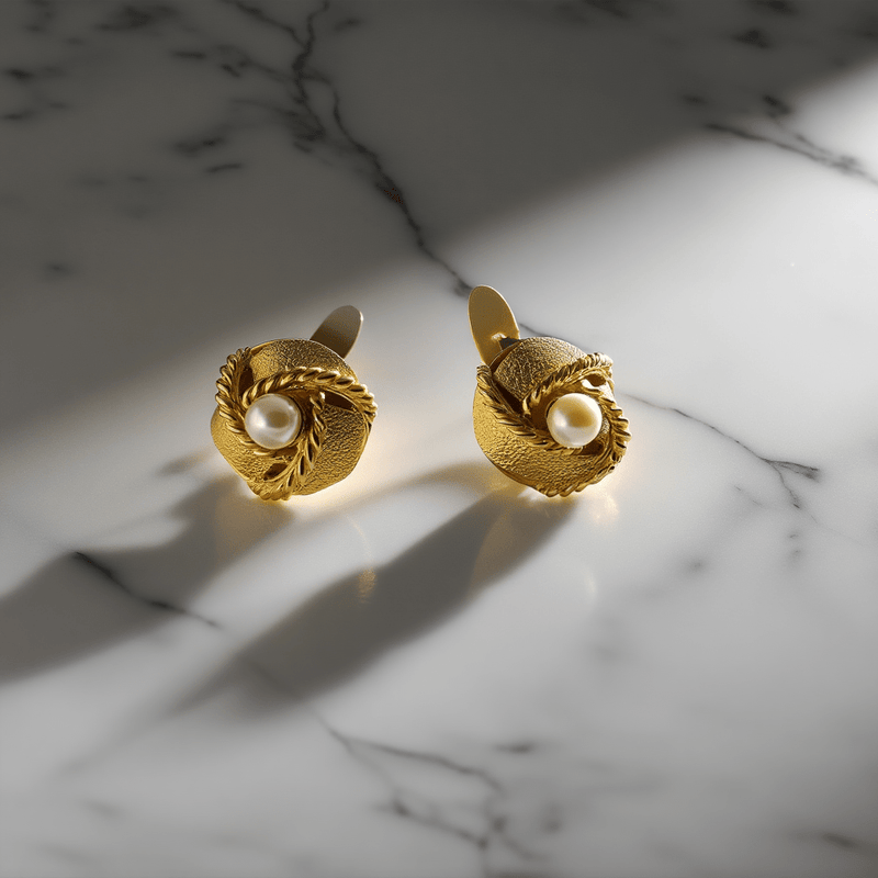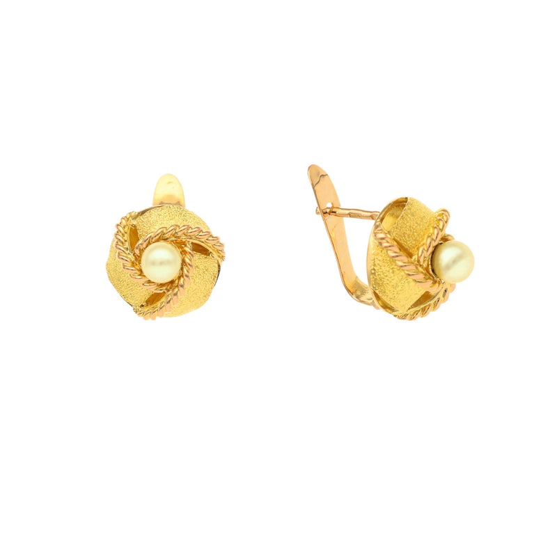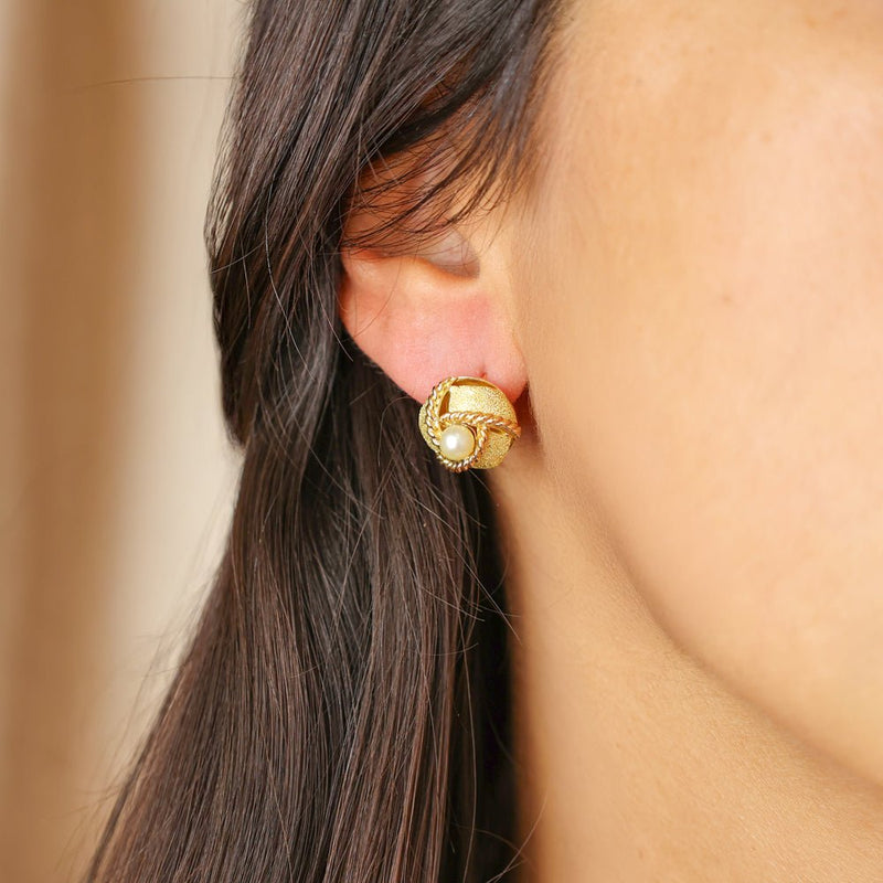 En el centro de cada pendiente, una elegante perla natural aporta un toque clásico y atemporal, contrastando armoniosamente con el detalle de oro texturizado. La combinación de la perla y el oro trabajado hace que estos pendientes sean únicos y llenos de personalidad.