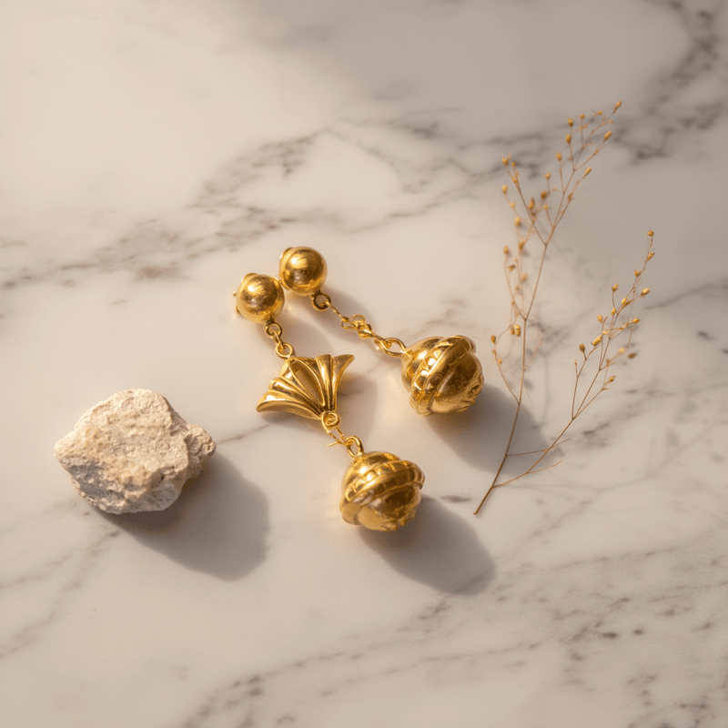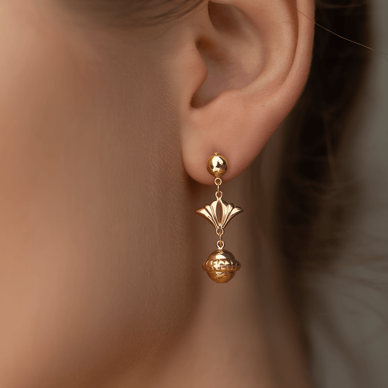 Pendientes colgantes de oro con detalle de bola y abanico: sofisticación y diseño exclusivo