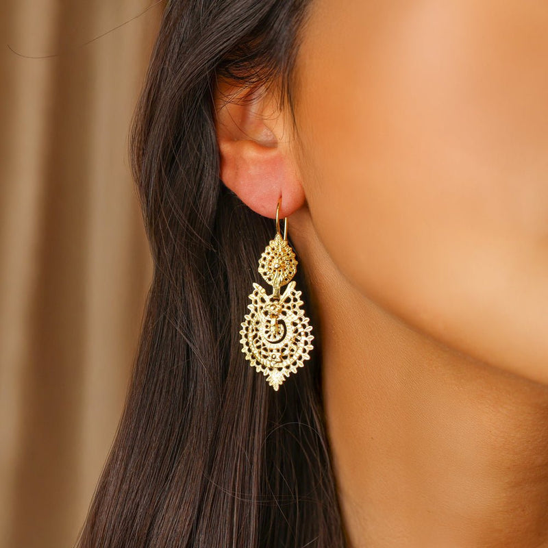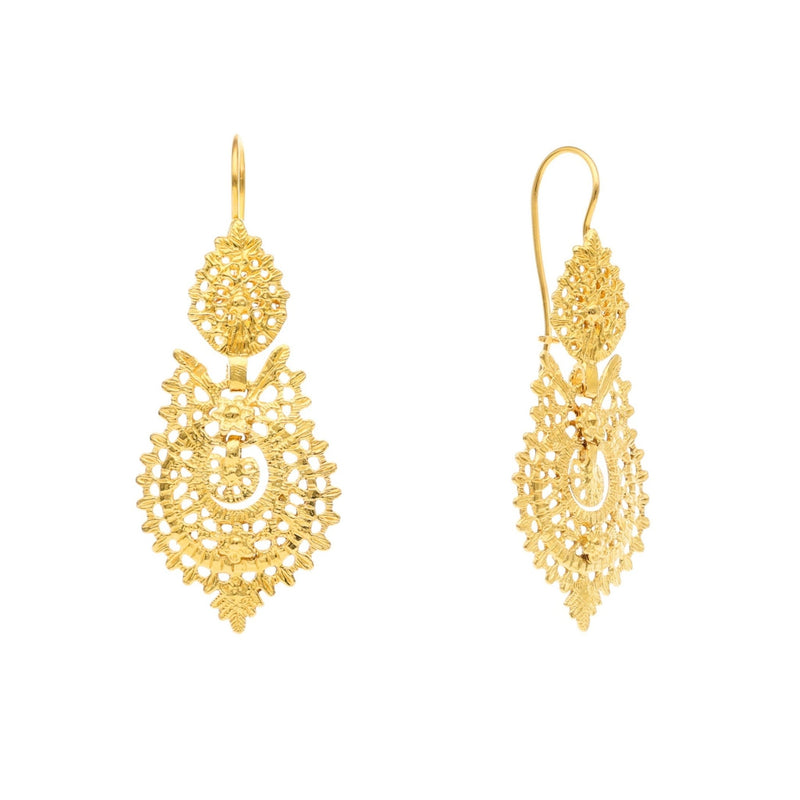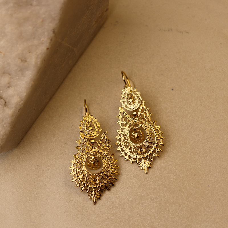 Ideais para ocasiões especiais — mas perfeitos para quem gosta de sentir-se única todos os dias — os brincos em ouro estilo rainha são uma escolha carregada de história e carácter. O brilho do ouro de 19 quilates destaca a beleza de cada detalhe, tornando-os o acessório perfeito para quem aprecia joias com alma, tradição e presença. Uma peça que não só se vê, mas que se sente — como uma verdadeira rainha deve usar.