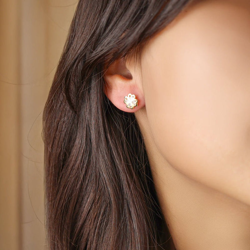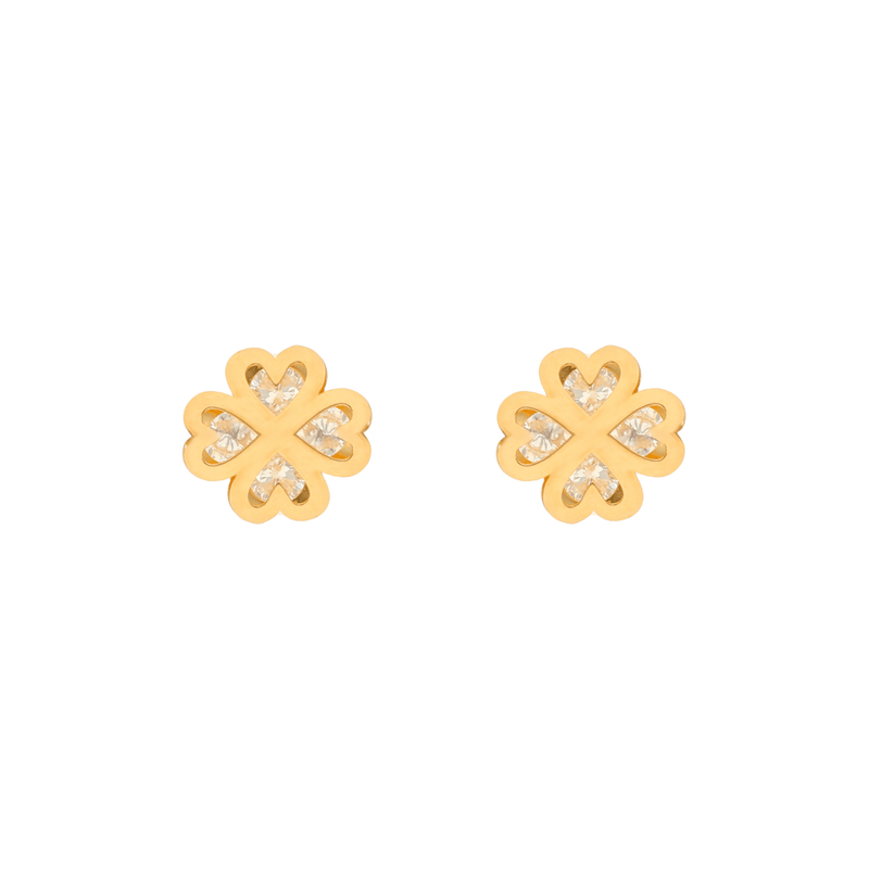 Pendientes Trébol en Oro de 19k con Circonitas (0,9cm)