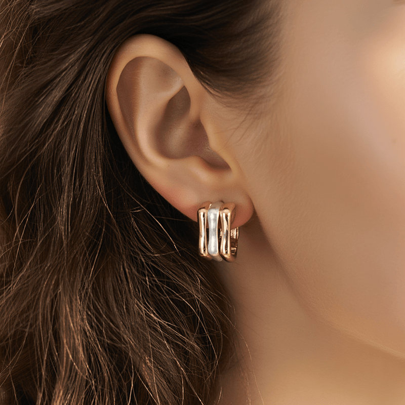 Los pendientes tricolores de oro de 19,2 kt son una celebración de la elegancia y la versatilidad, combinando armoniosamente tonos de oro amarillo, blanco y rosa. Este diseño tricolor crea un look único y moderno, destacando como una pieza sofisticada y llena de personalidad.