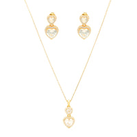 Conjunto de collar y pendientes de plata en tono dorado con dos circonitas en forma de corazón