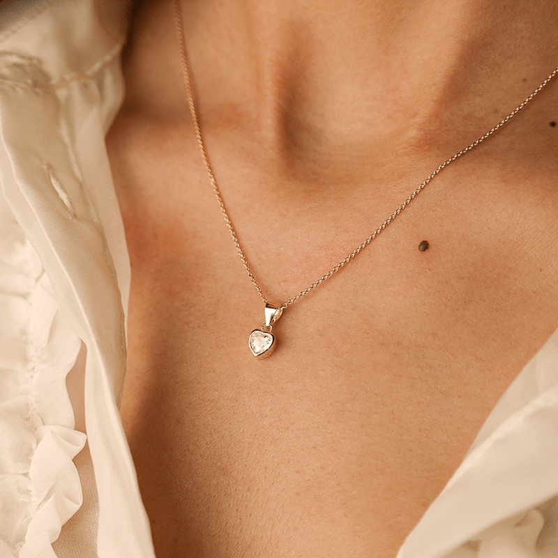 Conjunto de collar y pendientes de plata 925 y oro con circonitas de corazón