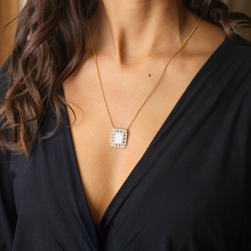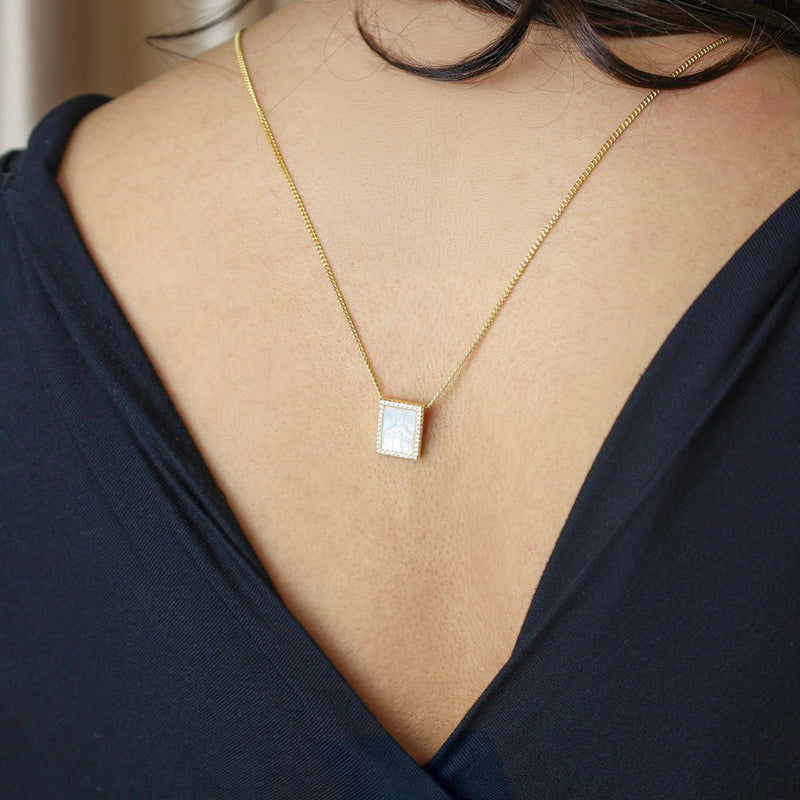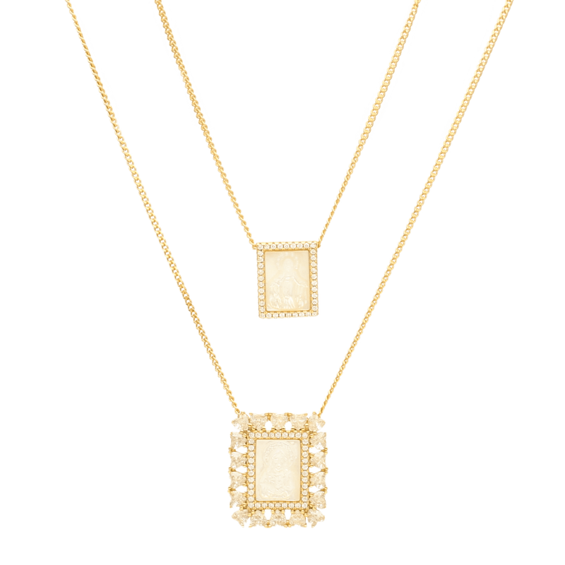 Más que un simple accesorio, este escapulario de plata es un símbolo de devoción y protección divina. Las imágenes religiosas talladas en nácar reflejan la luz de la fe y la espiritualidad, mientras que los detalles de circonita, dispuestos en forma de corazón, representan el amor incondicional y la presencia constante de lo sagrado en la vida cotidiana.