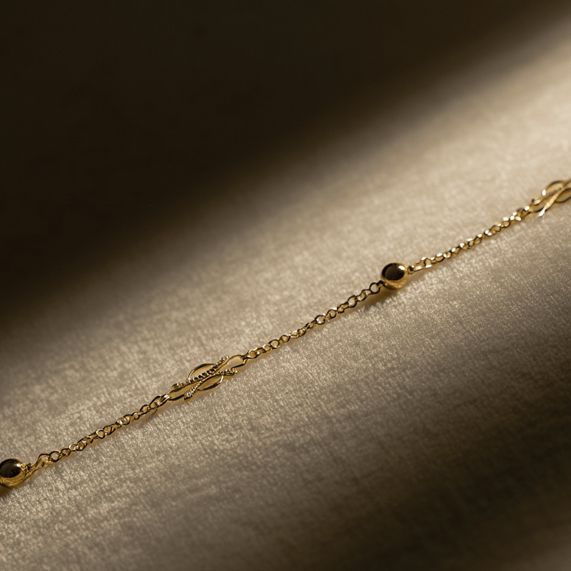 Este collar de oro de 19,2 quilates presenta una combinación única de intrincados eslabones y esferas que le confieren una elegancia moderna y sofisticada, convirtiéndolo en la opción perfecta para las mujeres que aprecian las joyas con diseños distintivos. Ligero y cómodo, este collar es ideal para el día a día o para ocasiones especiales, añadiendo un toque de lujo a cualquier look.