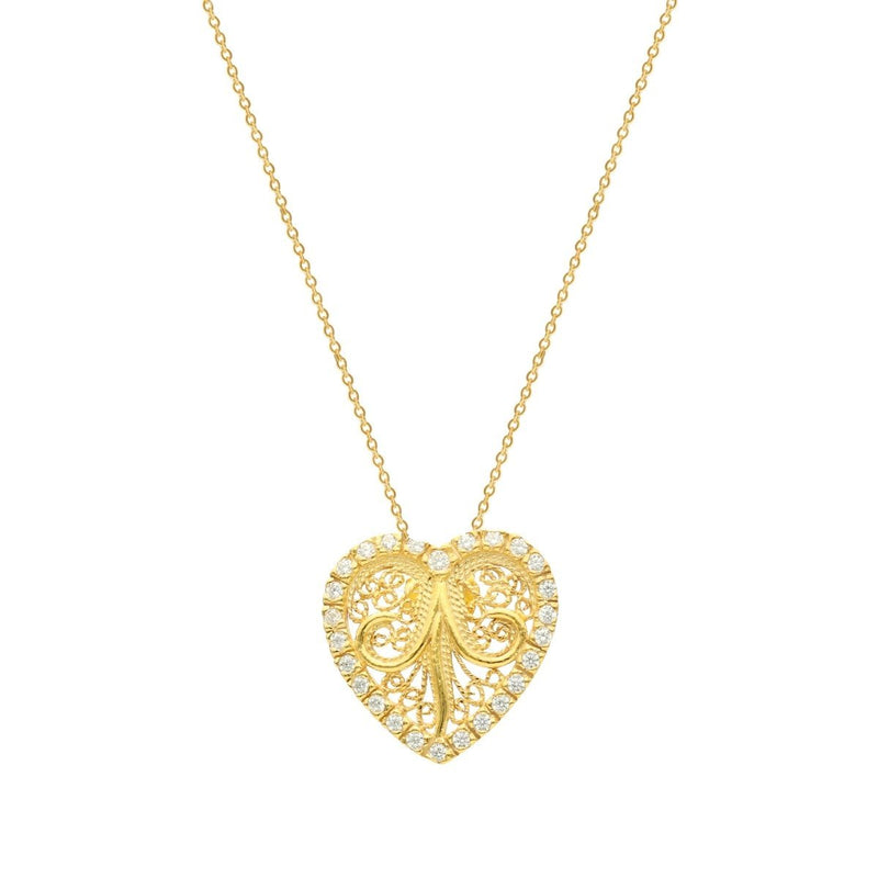 Collar de Plata con Corazón de Filigrana y Circonitas