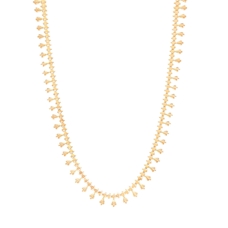 Esta impresionante gargantilla de oro de 19,2 kt es una verdadera obra de arte, adornada con delicadas hojas que simbolizan la renovación y la prosperidad en su forma más pura.