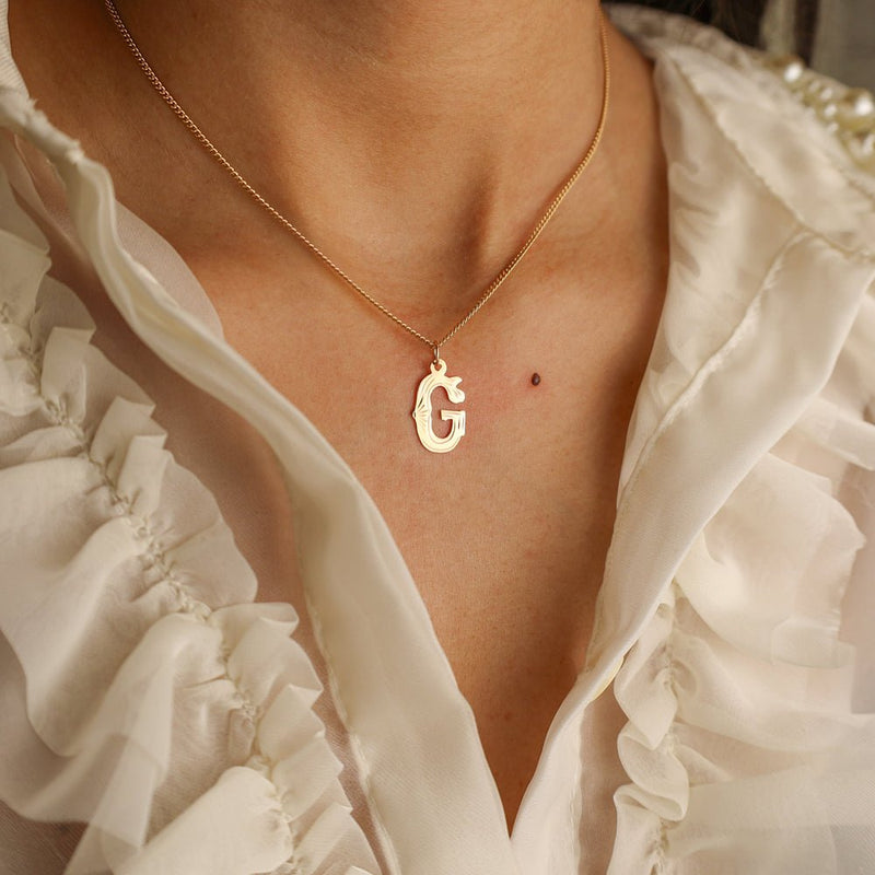 El efecto veteado añade un toque de sofisticación al diseño, dándole a la pieza una textura visualmente interesante. La presencia de la letra "G" personaliza aún más la joya, haciéndola ideal como regalo personalizado o para conmemorar algo significativo que comience con esa letra, como un nombre o un momento especial.