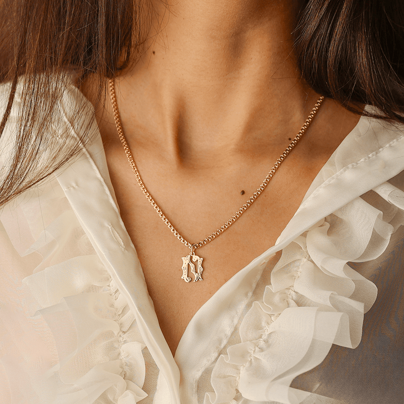 El efecto veteado añade un toque de sofisticación al diseño, dándole a la pieza una textura visualmente atractiva. La presencia de la letra "N" personaliza aún más la joya, haciéndola ideal como regalo personalizado o para conmemorar algo significativo que comience con esa letra, como un nombre o un momento especial.