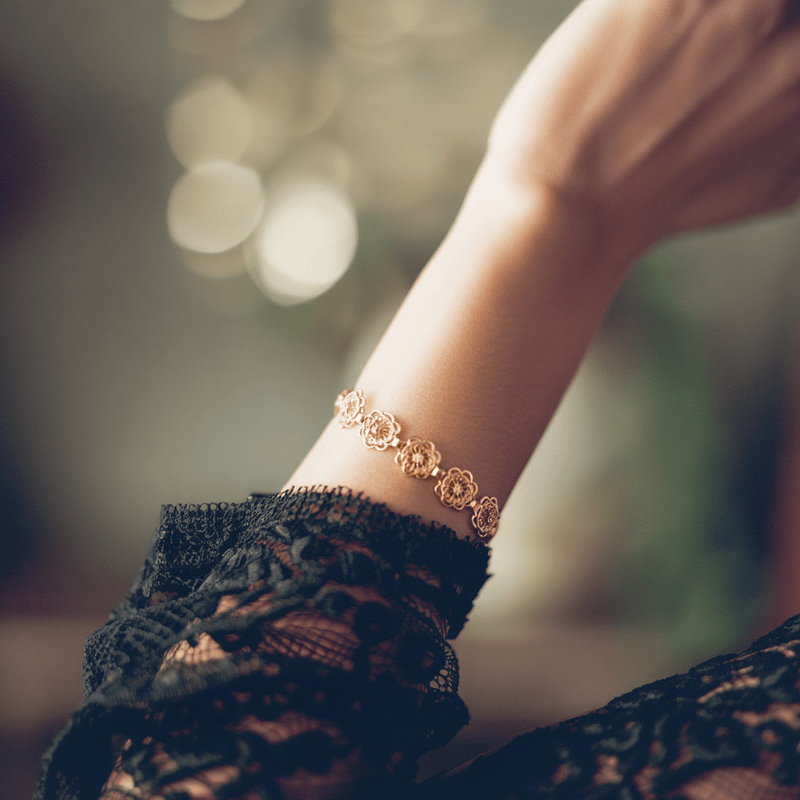 Pulsera de flores de filigrana dorada (18,5 cm)