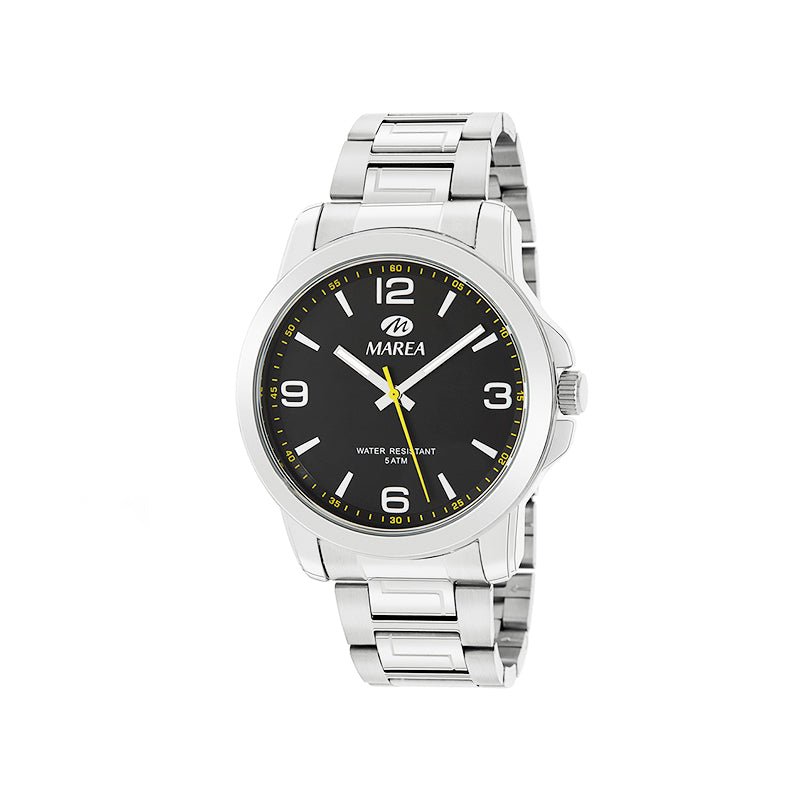 El brazalete de acero inoxidable proporciona resistencia y comodidad, mientras que el movimiento de cuarzo garantiza una precisión absoluta para el uso diario. Además, su resistencia al agua de 5 ATM (50 m) le permite soportar salpicaduras y exposiciones leves.
