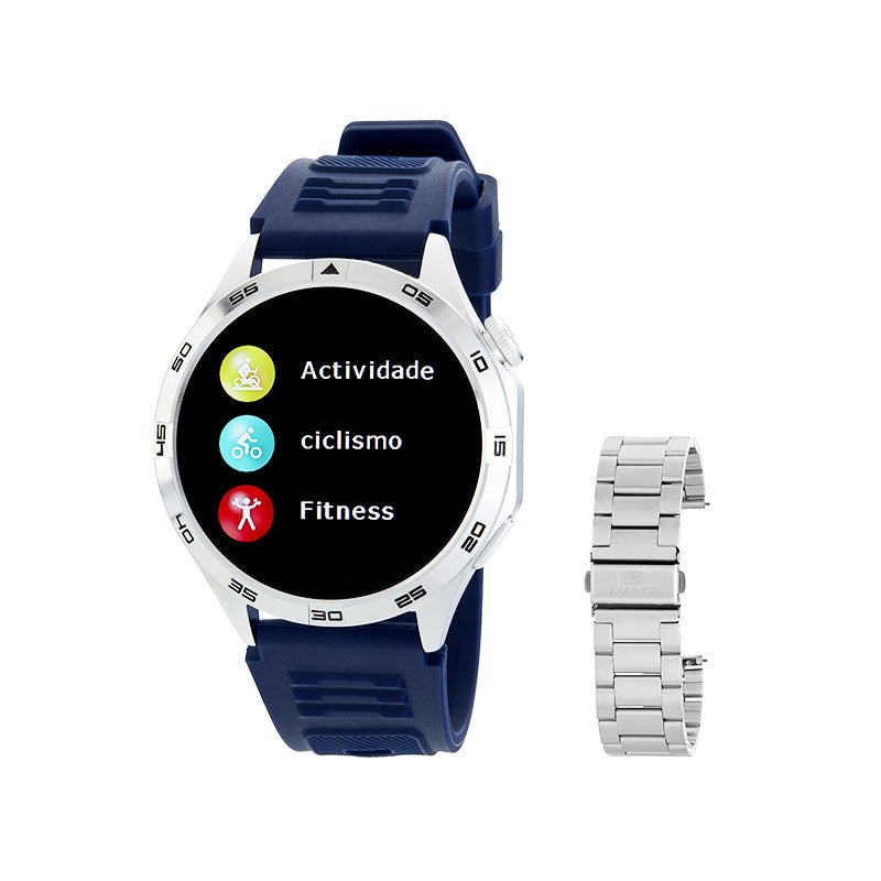 Con una caja de acero inoxidable de 44 mm y una pantalla digital negra , el Logic ofrece un aspecto sofisticado y versátil. Incluye dos opciones de correa : una de acero inoxidable y otra de silicona azul , lo que permite elegir entre un estilo clásico y uno deportivo. El cierre desplegable y la hebilla garantizan un ajuste seguro y cómodo.