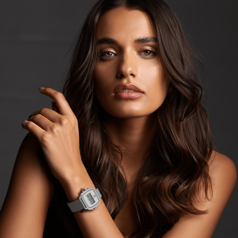 El reloj Nyra para mujer combina una elegancia discreta con tecnología práctica, ideal para el día a día moderno. Con una pantalla digital de 33 x 37 mm , presenta un diseño compacto y sofisticado, perfecto para muñecas delicadas.