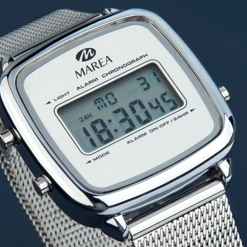 Su pantalla LCD ofrece funciones útiles como el día de la semana, la alarma y el formato de 12/24 horas , todo accesible de un vistazo. La pulsera de acero inoxidable garantiza durabilidad, comodidad y un acabado refinado.