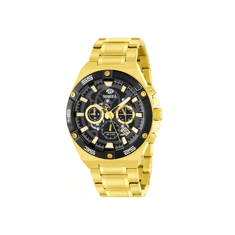 Este relógio apresenta caixa de 43 mm em aço inoxidável, movimento de quartzo multifunções (cronógrafo, calendário), cristal mineral, resistência à água até 100 m (10 ATM) e bracelete robusta com fecho dobrável — uma combinação que alia precisão, durabilidade e estilo.