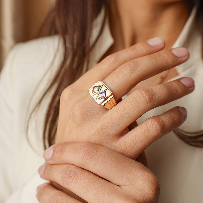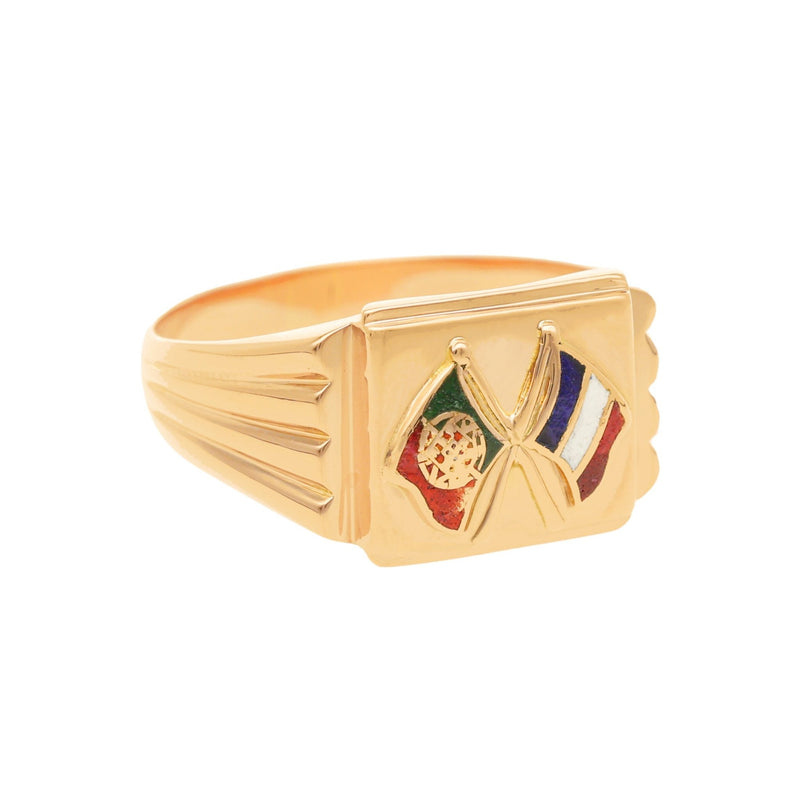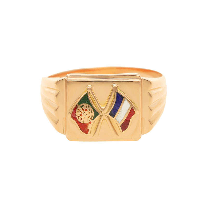 Anel em Ouro de 19.2kl com Bandeira de Portugal e a Bandeira de França em esmalte colorido
