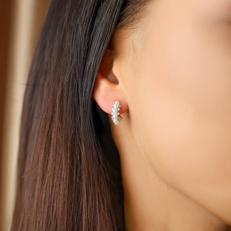 Seja para expressar a sua elegância no quotidiano ou para complementar um look refinado, estas argolas abertas em prata com pérolas e zircónias são a escolha perfeita para quem procura charme, brilho e sofisticação num só acessório.