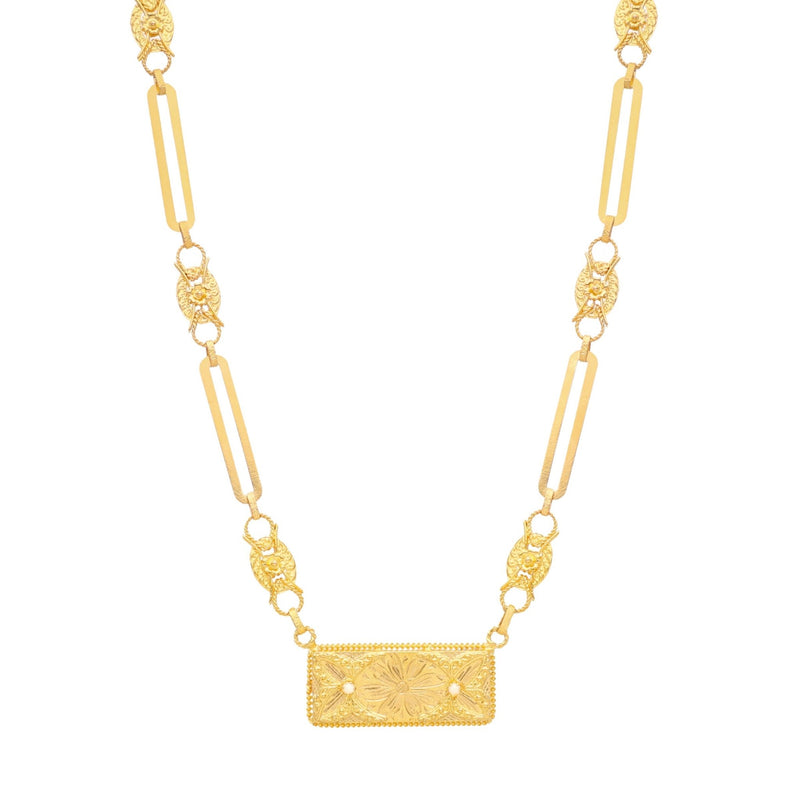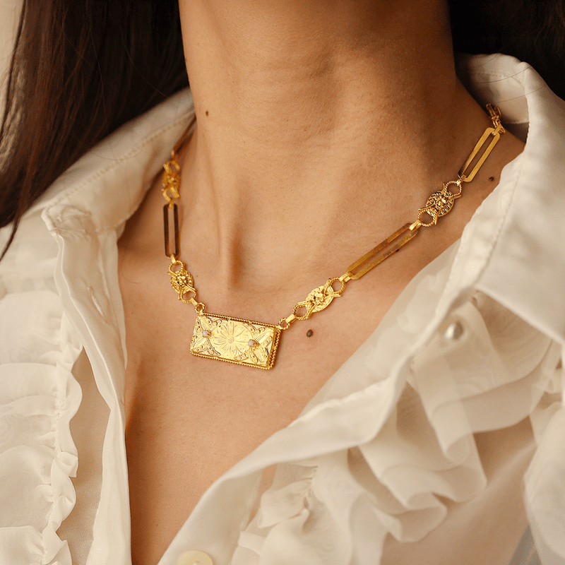 Gargantilha Dona Flor em Ouro de 19.2kl adornado de Medalhão Retangular