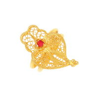 Romântico, tradicional e cheio de alma portuguesa, o Anel Coração de Lisboa celebra a simbologia do icónico Coração de Viana, trabalhado em filigrana delicada e luminosa. No centro, uma pedra vermelha intensa acrescenta paixão, brilho e personalidade, evocando a emoção profunda que caracteriza o fado. Cada detalhe é meticulosamente rendilhado, transformando o coração numa verdadeira obra de arte da joalharia portuguesa.