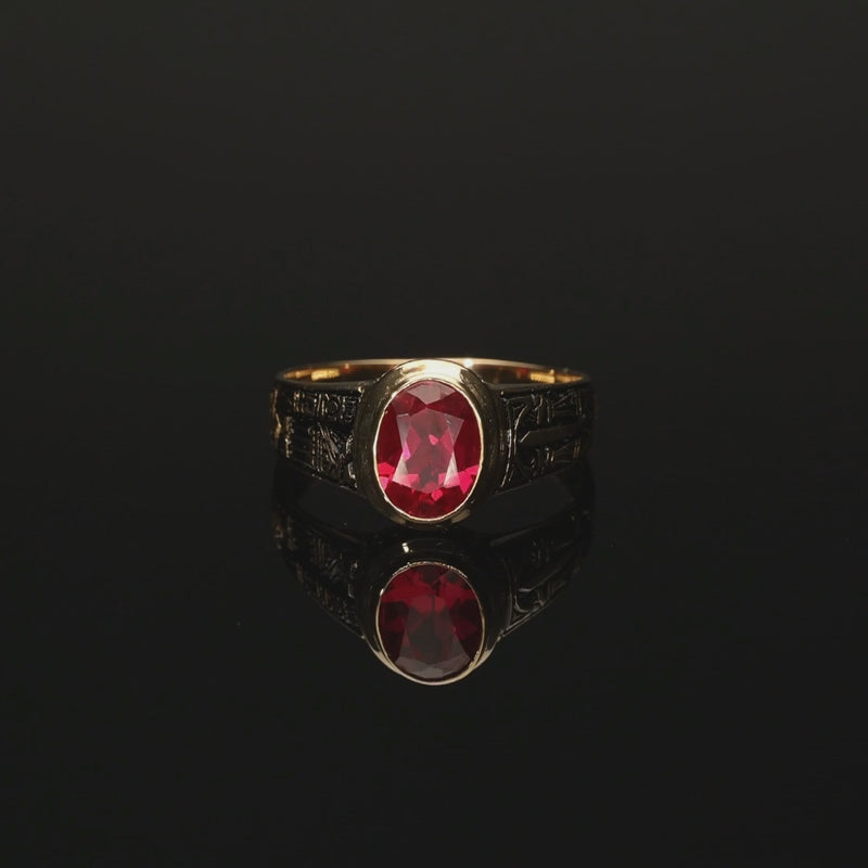 Anel de Curso em Ouro de 19,2Kl referente ao Curso de Direito da Universidade de Coimbra, adornado de Rubi