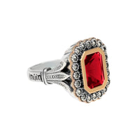 Anel D. Constança em Prata e Ouro 9kl com Marcassites e Pedra Vermelha