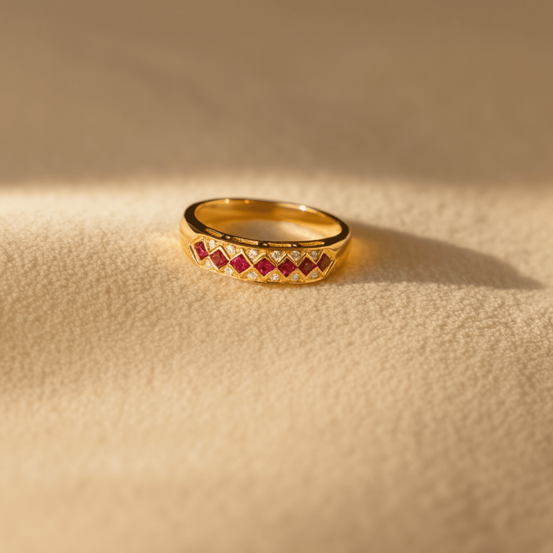 O Anel em Ouro com Espinela e Diamantes é mais do que uma simples peça de joalharia, é uma verdadeira expressão de elegância e luxo.