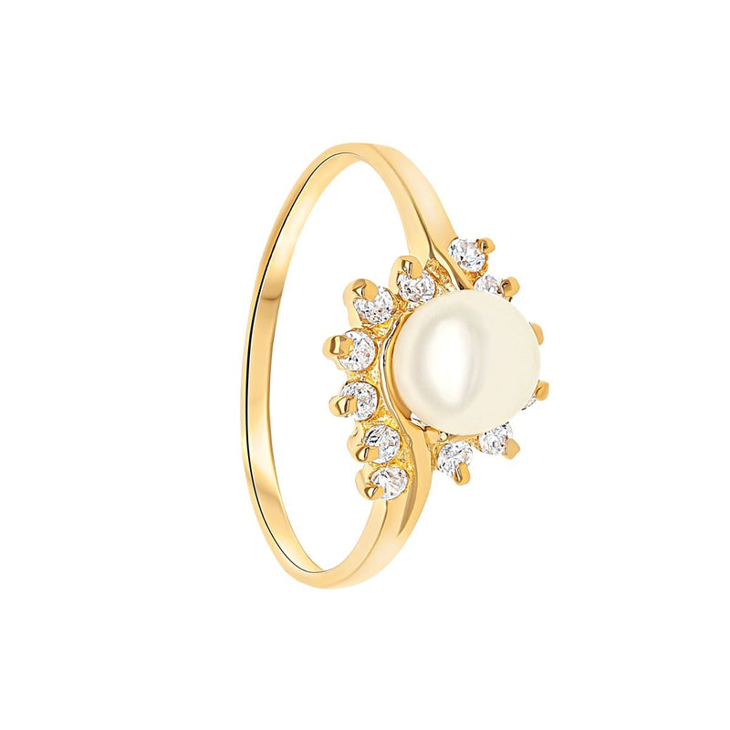 Anel em Ouro de 19.2kl adornado de elegante Pérola ladeada de Zircónias