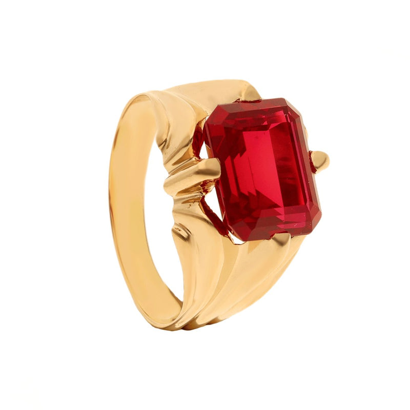Anel em Ouro de 19.2kl adornado de magnífico Rubi sintético